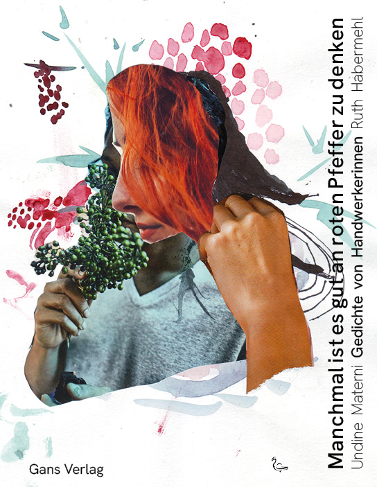 Die Malerin und Grafikerin Ruth Habermehl hat die Gedichte nicht einfach nur illustriert – sondern durch teilweise freche, erstaunliche und augenzwinkernde Collagen ergänzt. Und natürlich ist auch sie eine Handwerkerin, denn ihre Collagen entstehen nicht am Bildschirm, sondern mit ihren Händen, die virtuos mit Kleber, Schere und Stiften umzugehen vermögen.